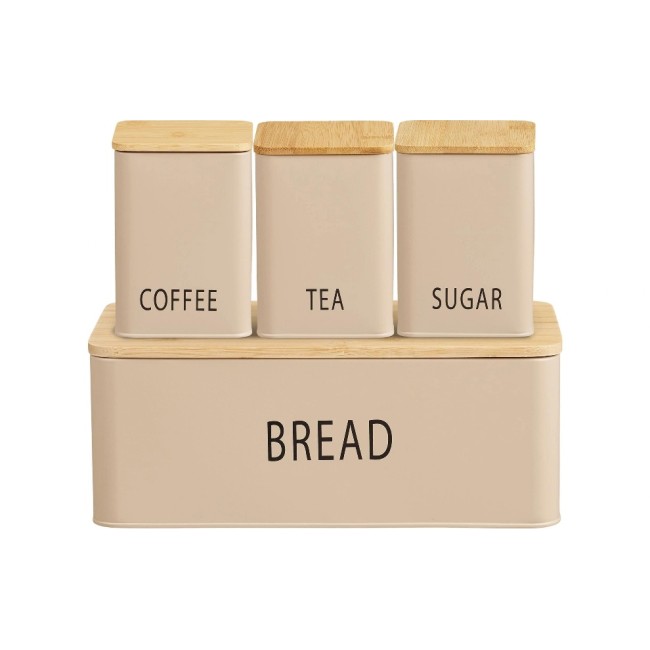 House Nordic Brotkasten-Set 4-teilig, Beige, Metall, Bambus, 10/18x10/33x13/13.5 cm