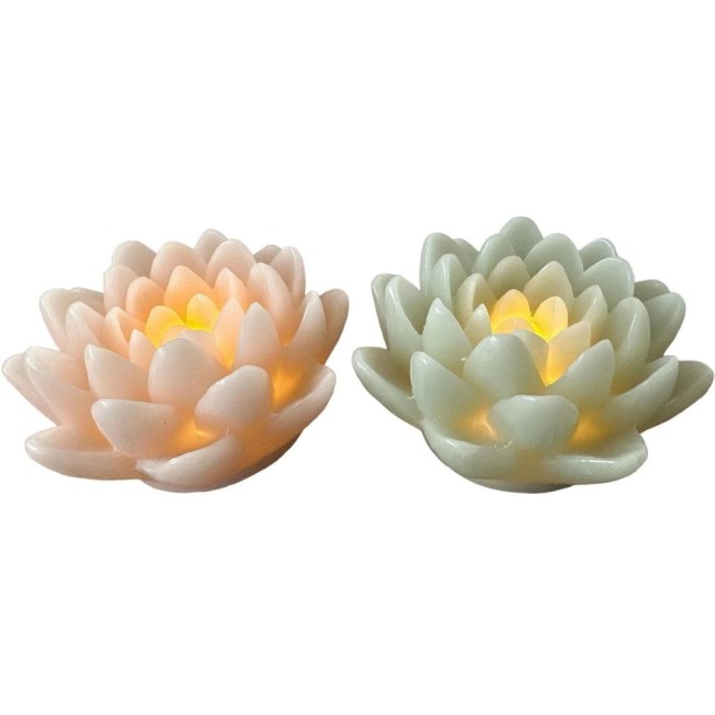 Dameco Bougie de cire LED Fleur de lotus Lot de 2 rose et vert turquoise
