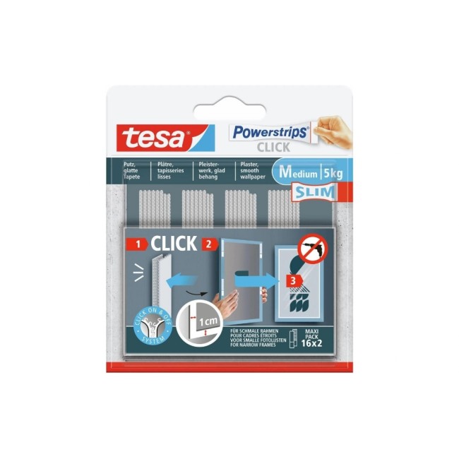 tesa Striscia di montaggio Powerstrips CLICK Slim - 16 x 2 pièces