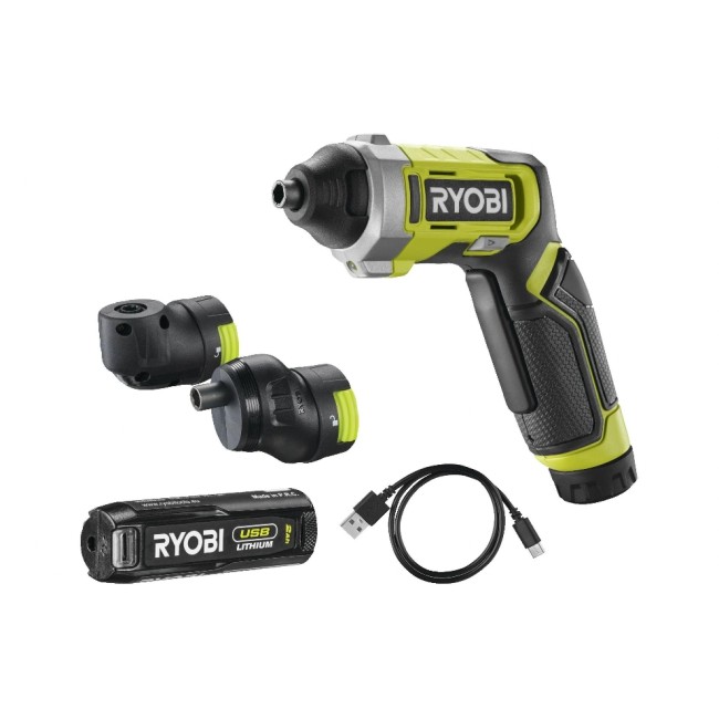 Catégorie de produit: visseuse, Outil de raccordement: Porte-embout hexagonal 1/4, Équipement: Avec batterie, chargeur, embouts et mallette, Set: Oui, Puissance en watts heure: 8 Wh, Système de batterie: Ryobi 4 V USB