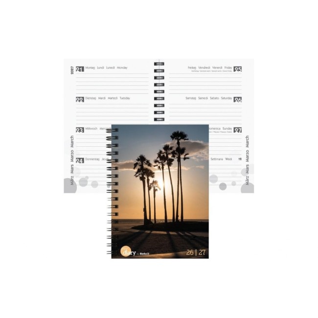 Biella Emploi du temps scolaire mydiary Wire-O 2026/27 Palms, 12 x 16.5 cm