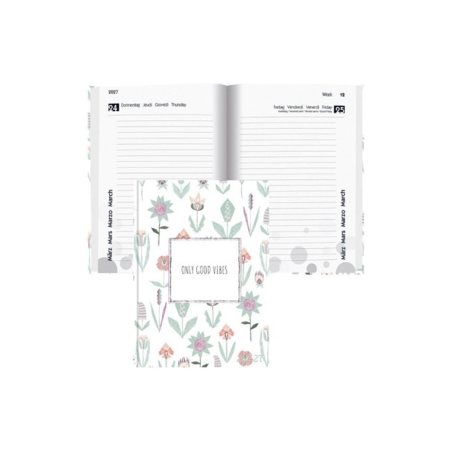 Biella Schüleragenda 2026/27 Flower, 12x16.5cm,1 Tag pro Seite, gebund. wattiert