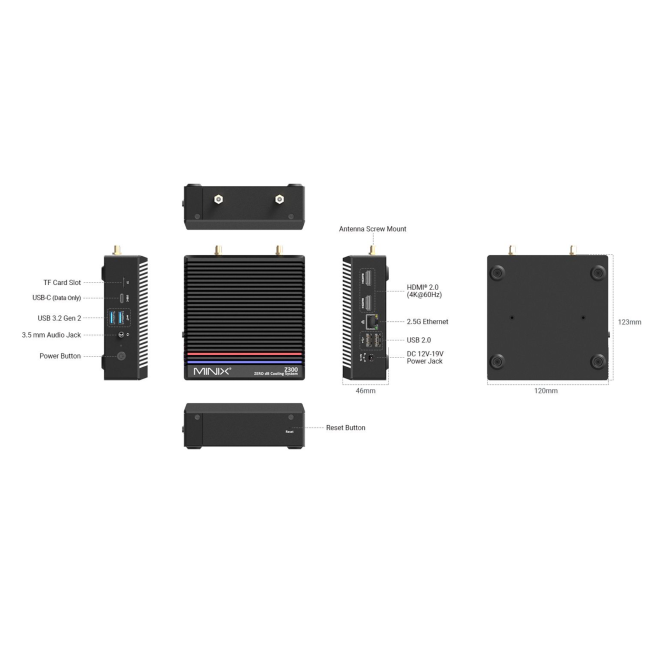 The MINIX Z300 is a powerful mini PC equipped with an energy-efficient Intel Alder Lake-N Octa-Core i3-N300 processor, delivering over 30% more performance. Its high cost-effectiveness makes this mini PC ideal for office work, home theater, and digital signage.