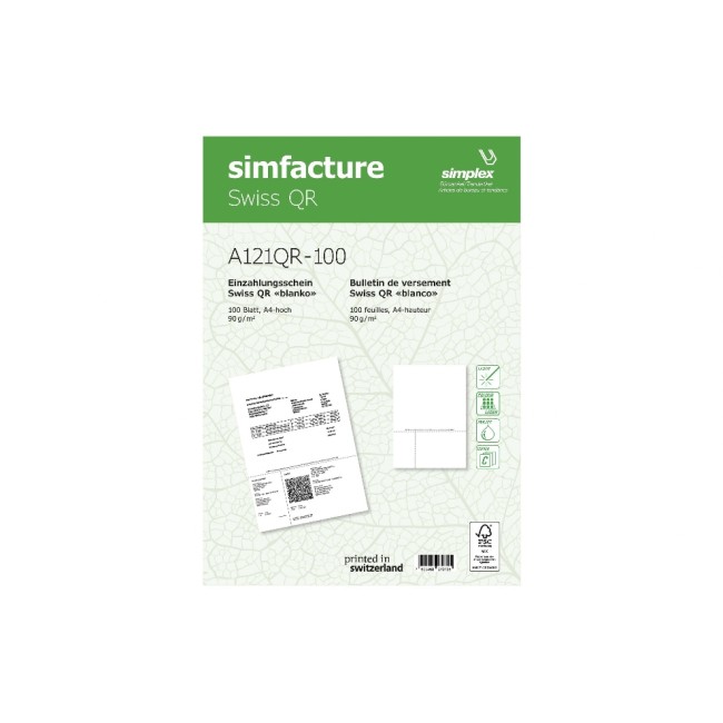 Simplex Einzahlungsschein Simfacture Swiss QR 500 Blatt, Weiss