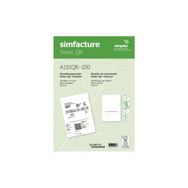 Simplex Einzahlungsschein Simfacture Swiss QR Recycling 100 Blatt